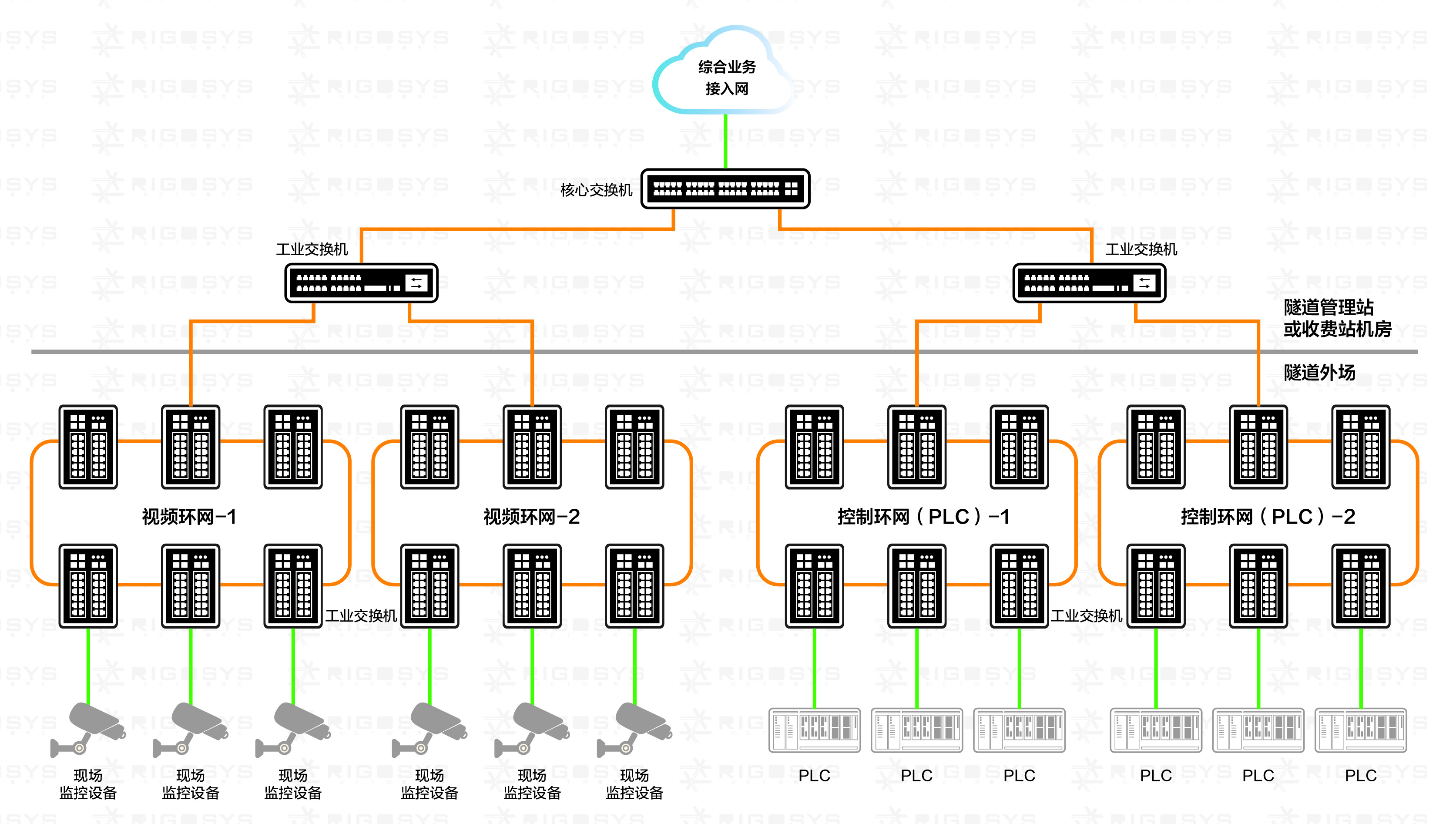 隧道监控的核心思想就是实现这些子系统的联动及本地控制,而实现这一切必须依靠控制中心与这些区域控制器之间的通讯网络。